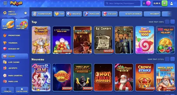 Jeu clair, paiements rapides et grand choix chez Pistolo